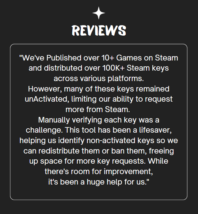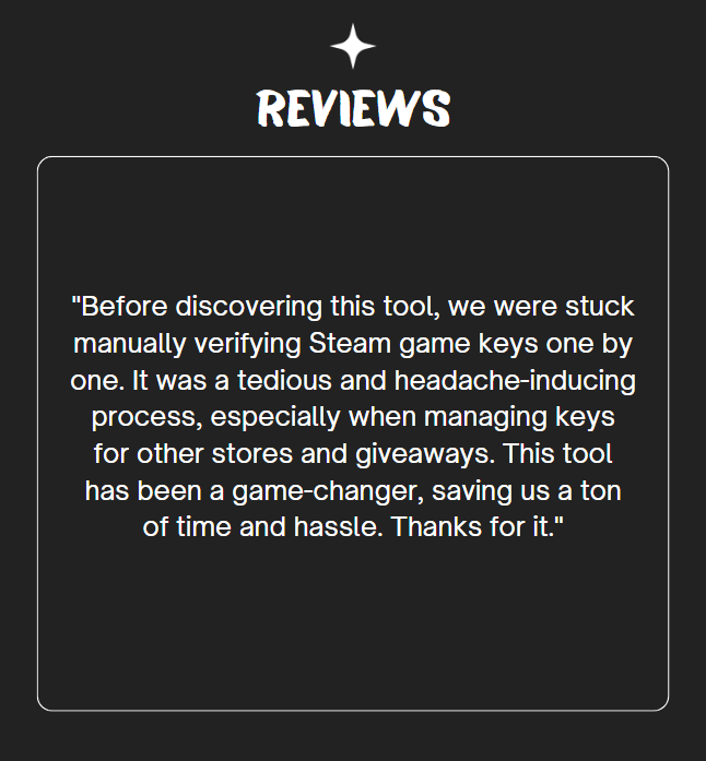 To verify steam keys status distributed across multiple stores, platforms, giveaways, etc.