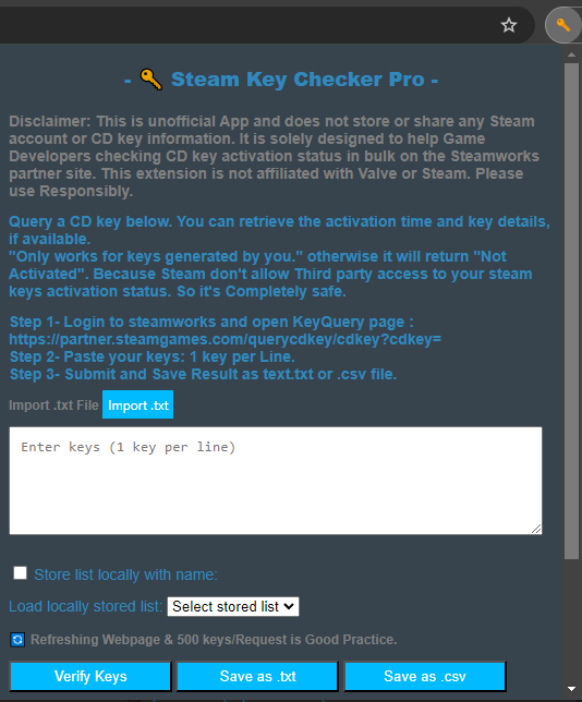 Currently, you can verify 1000 steam keys at once. ( Recommended 500 at once )