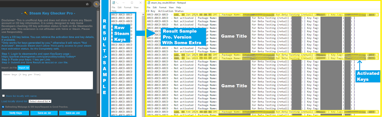 Extension only help you find Non-Activated Keys from thousands of keys.